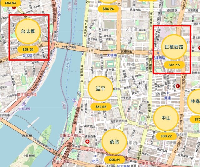 → abyssa1: 不用過橋的 古亭-東門 也差這麼大呢 08/01 11:41