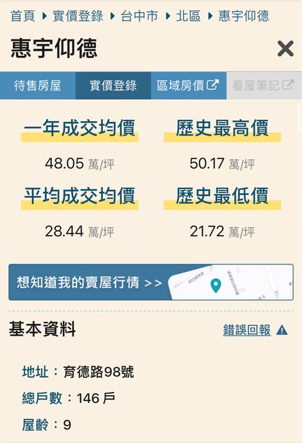 其實沒什麼話題性的北區成屋也不知不覺漲很多了,而且還是高價的,抓了幾個三千萬以 上的案子來看,北區的舜元睦森林、惠宇仰德、順天科博。只要台中有買房,到處都會漲 ,所以我舊區、重劃區都買,台中人就不要再內戰了。 https://i.imgur.com/dmw5tNm.jpg
