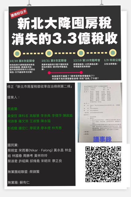 標題[新聞] 新北市議會將開臨時會 藍綠攻防囤房稅修
