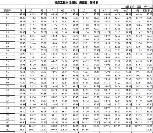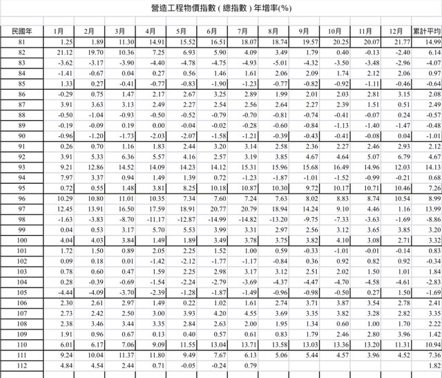 標題[情報] 營造工程物價指數7月