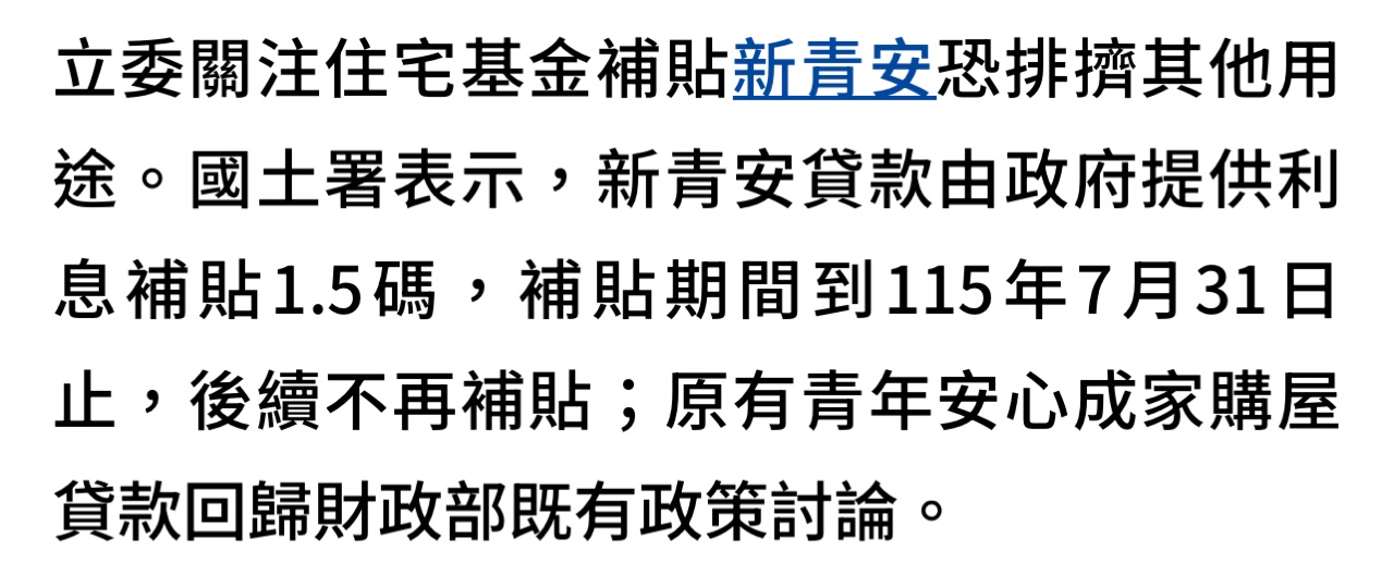 不過,土銀認為,新青安對於房貸、房市影響還是頗深,因為新青安有5年的寬限期,這5