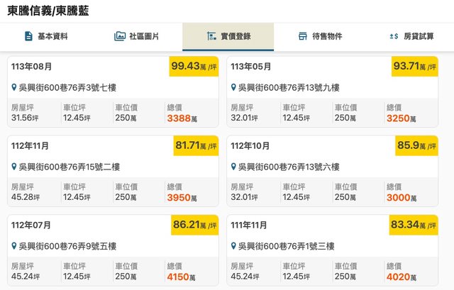 本物件附近地址實價登錄 :(內政部實登無扣除車位再計算單坪價格,故有誤差,附
