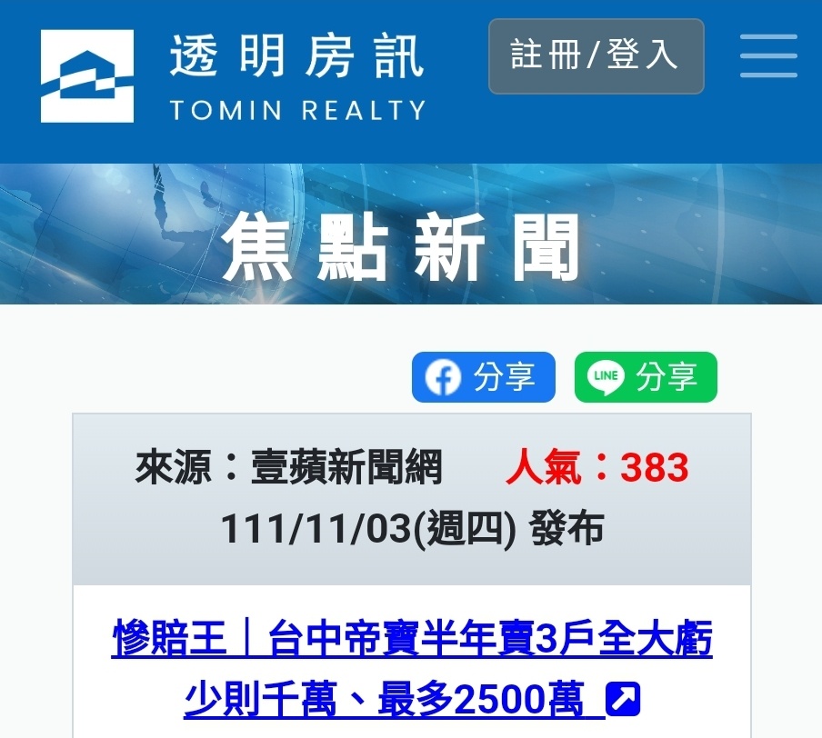 → jemdogdog: 另外根據統計今年上半年台中市豪宅賠售比率超過三成 11/30 05:31