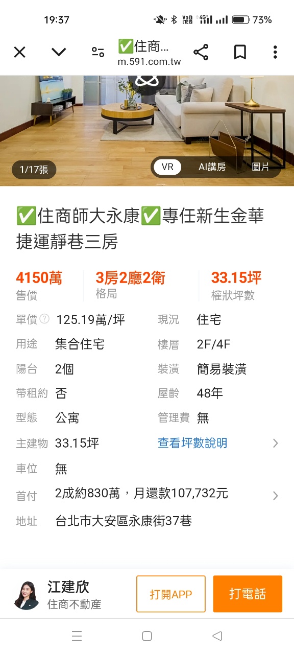 推 stststanly: 金華敦化學區內的15年屋,100萬/坪真的是有多少收多 11/30 19:10