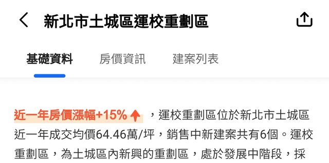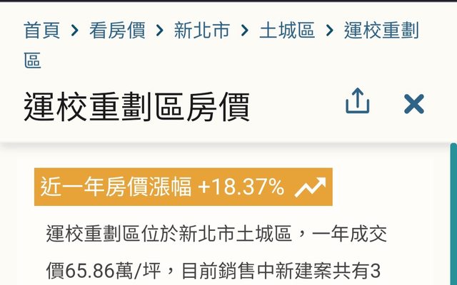 : 上了第三名前段班。運校以及鄰近的頂埔,也是近一年板南線新北段區域房價成長最快