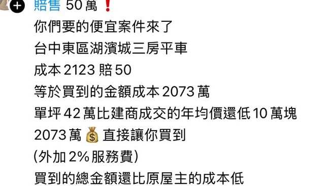推 jeffsu: 目前講賠售的都有一個特徵 就是投資客取向超大戶數跟爛建12/01 17:47