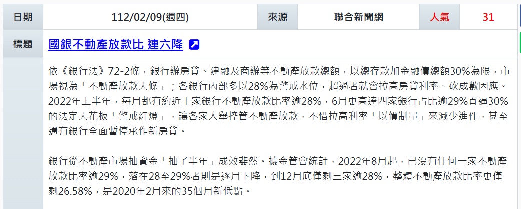 推 supereva: 銀行本來就會自主限貸 2022 2023 2024都一樣 12/03 16:06