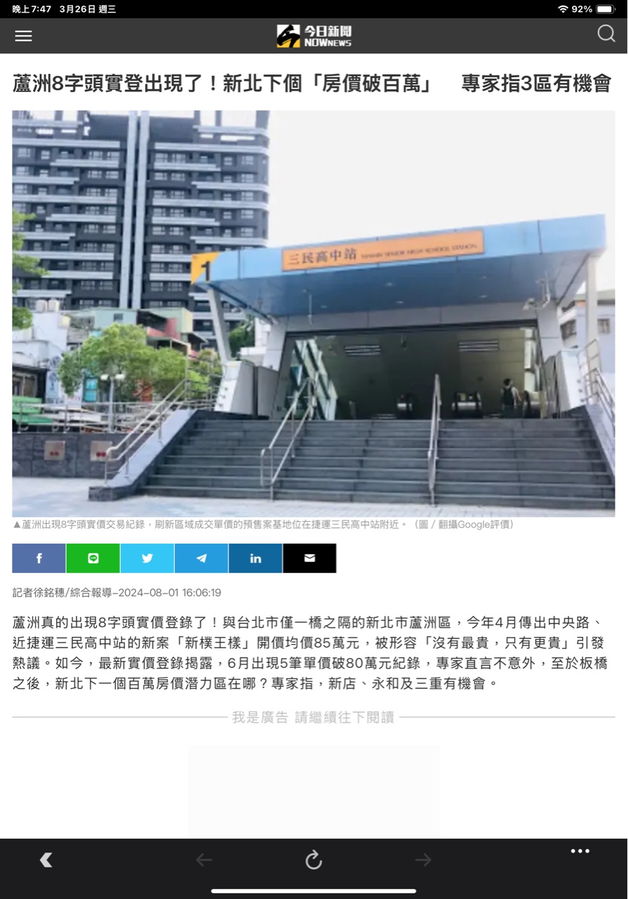 → planta: 我記得蘆洲好像有到七?有沒有八就給大家補充了?汐止有八 03/26 12:06