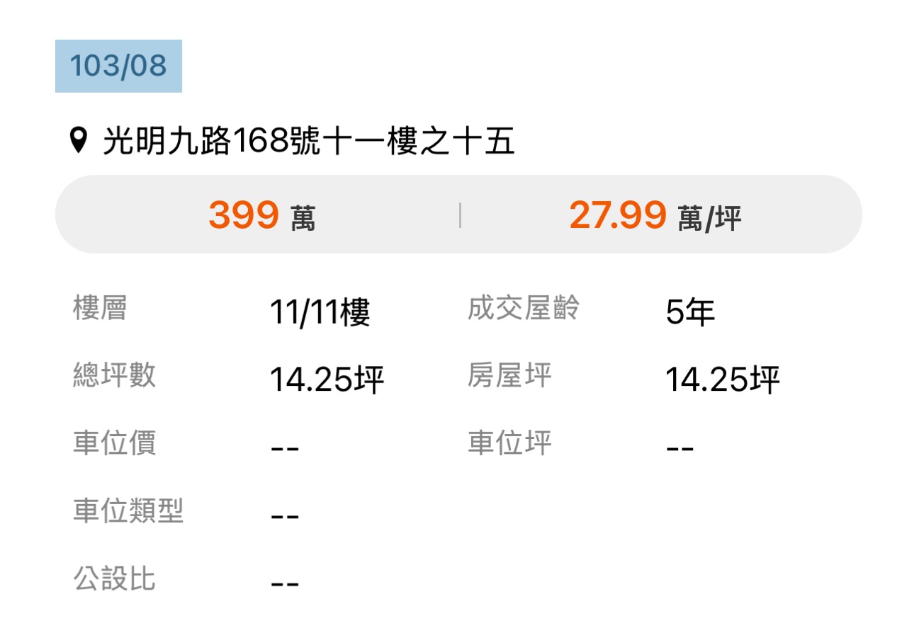 本物件兩年內上一筆實價登錄:無