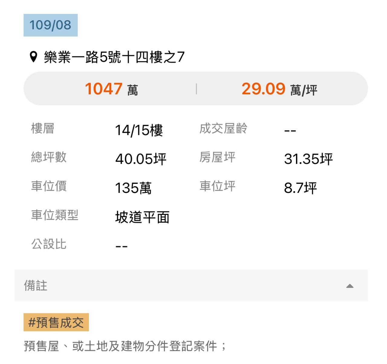 → gold08: 109年的實登 114年開價算合理啊 04/09 17:44