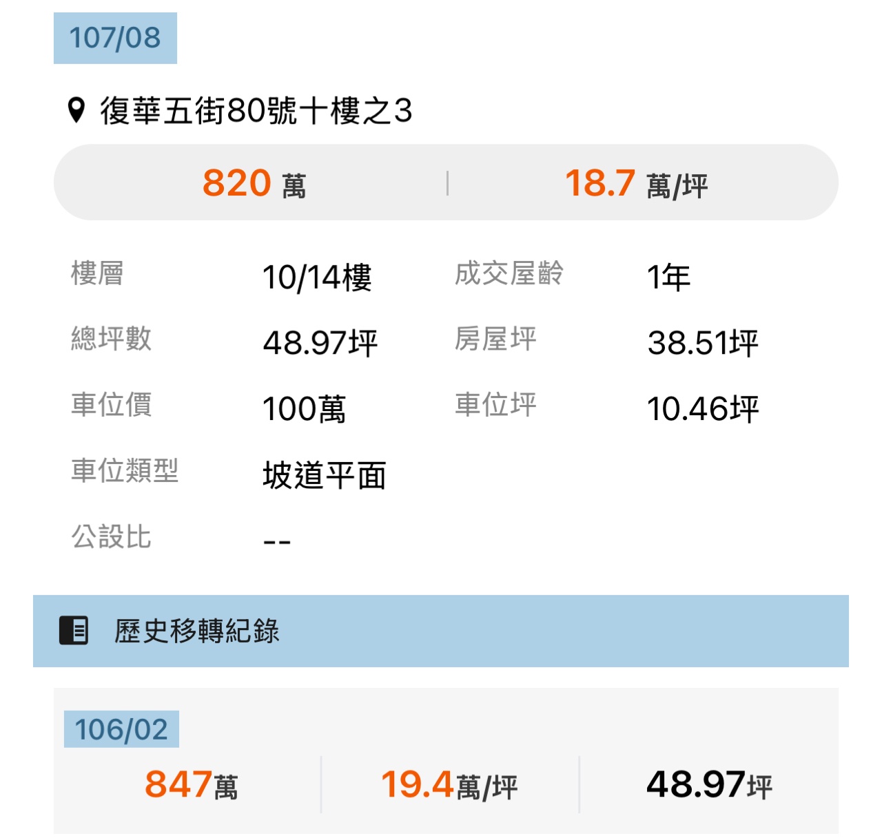 本物件兩年內上一筆實價登錄: