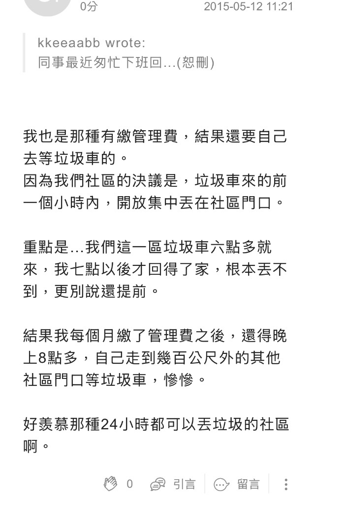 → sam21sam21: 大樓改天要追垃圾車不是不可能,如果知道漲幅就懂 07/09 14:48
