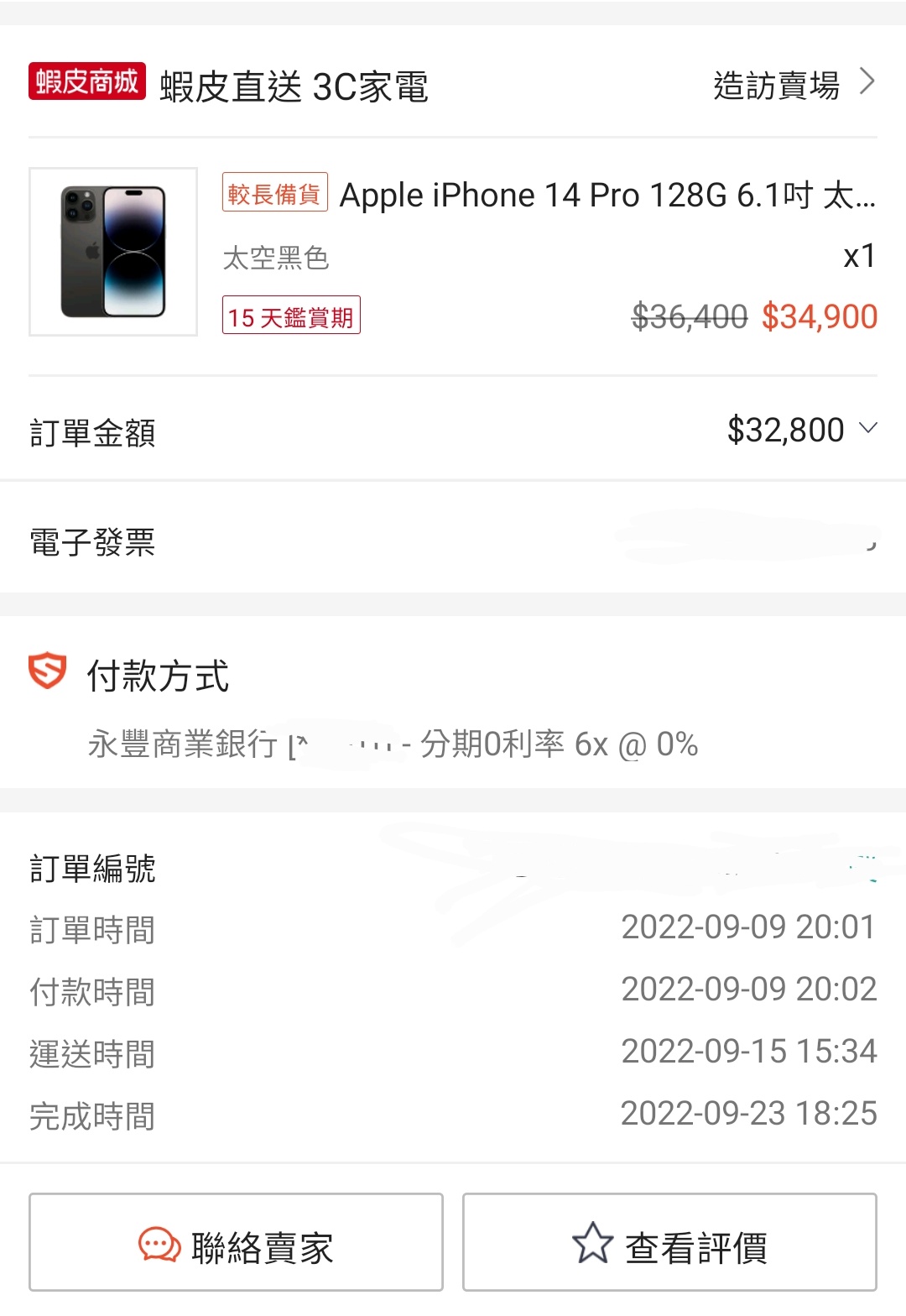 推 madmic25 : 當初買13,官網9/17開賣,我9/18凌晨在蝦皮官方3C 09/18 05:51