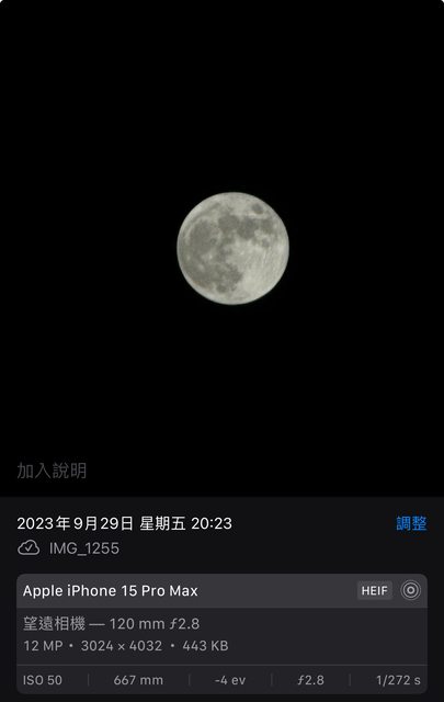 推 jraz : 25X的月亮,不是錄影模式拍攝,iPhone 15 Pro Ma 09/29 23:00
