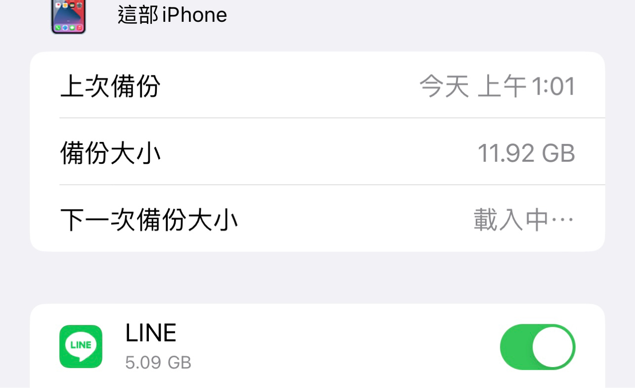 推 neomaster : 目前備份的容量,就是看系統顯示app使用容量 ex. 10/05 09:07