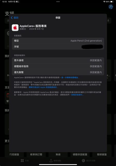然後說明因為我的 iPad 還在 AC+ 的保固內,但 Appel Pencil 沒有附加上去變成現場