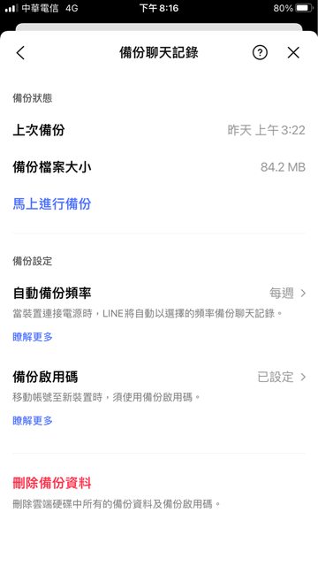 vegatom: line備份顯示成功之後 還在背景傳輸 最好隔幾小時10/27 22:08