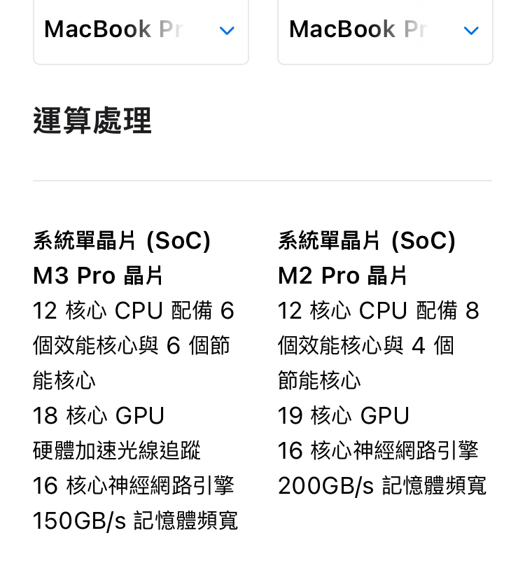 → gary8442: m1 m2 Pro 記憶體頻寬都是200GB/s m3 pro剩150GB/s10/31 14:36