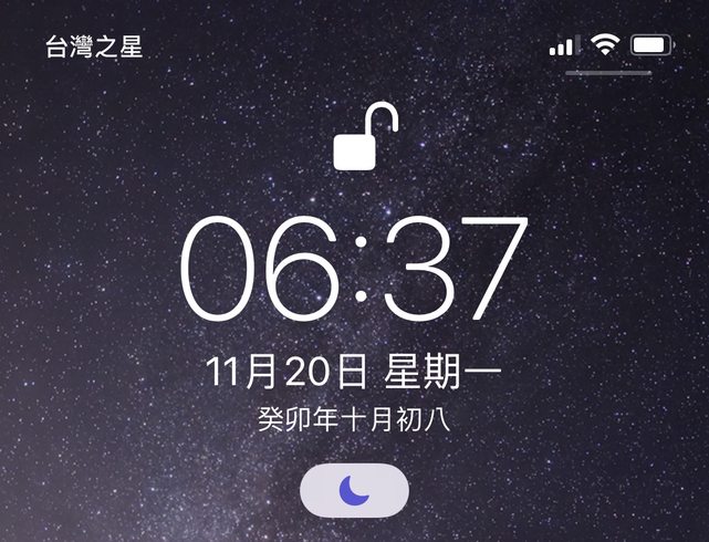 開啟勿擾模式時,時間旁邊就出現了月亮圖示