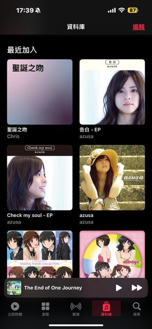 但現在他只有看到「最近加入」的歌曲,顯示方式是那首歌所屬專輯的封面