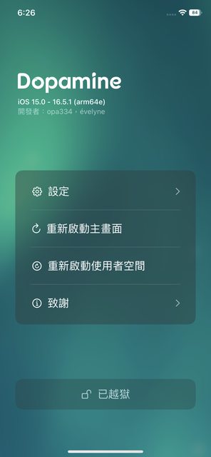 : 多巴胺 2.0:iOS 15.0 - 16.6.1,處理器 A9 以上的越獄工具