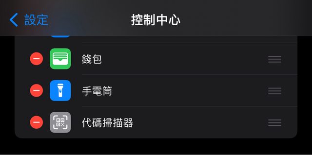 控制中心內開啟「代碼掃瞄器」