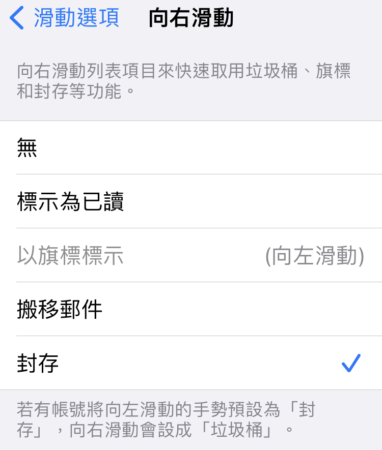 → mmmmei: 系統設定->郵件 可以設定滑動動作 03/04 10:05