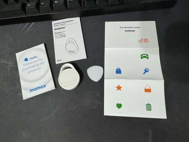 內容物有多國語說明書、tag本身、外面識別的小貼紙 https://i.imgur.com/qVFWwr7.jpeg