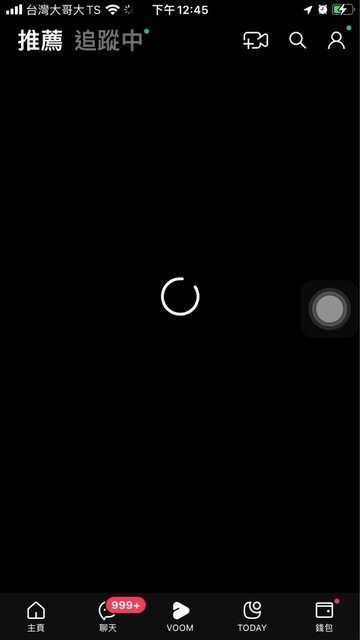 手機頂端(wifi 符號旁)跟畫面中間一直轉圈