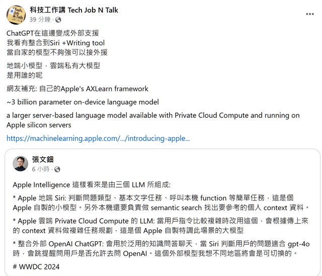 → krousxchen: 果然蘋果還是自已建了自家硬體作的ai雲端 06/11 11:23