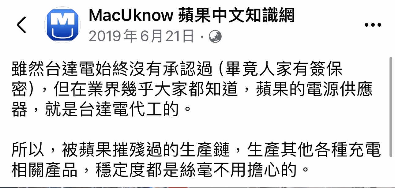 推 kerkerdog: 講的好像蘋果所有充電器都台達做的,明顯不是事實 07/09 13:08