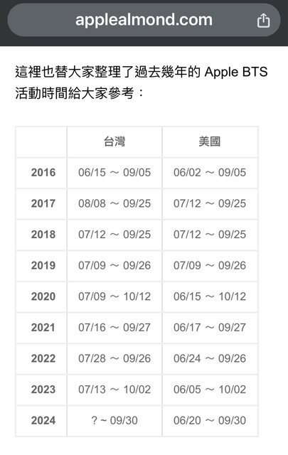 推 IMISSA: 每個人一年可以拿兩次BTS獎勵對嗎? 我可買兩件iPad?07/11 14:07