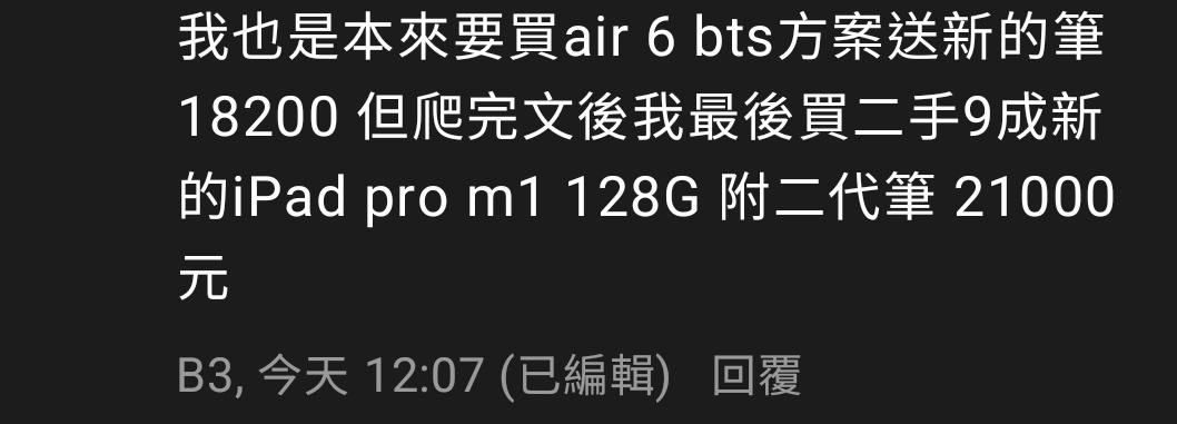 → gary8442: Air6 10.9" 256G 2024 BTS 21,700元 送 Pencil Pro07/11 21:51
