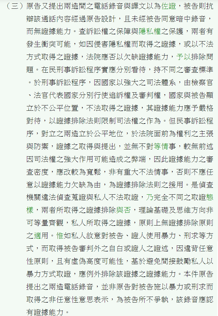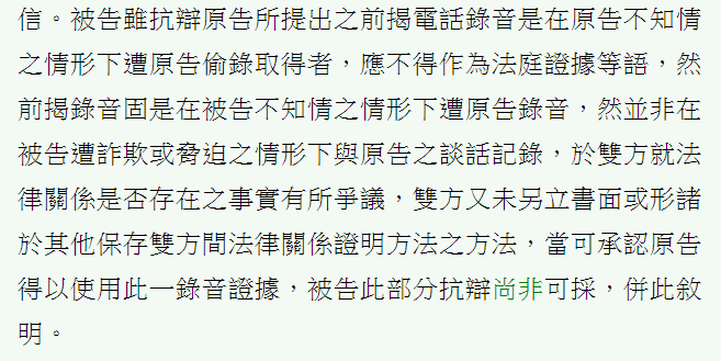→ tonyian: 刑法上一定可以採用單方錄音,但民法上就不一定採用,但 07/31 13:23