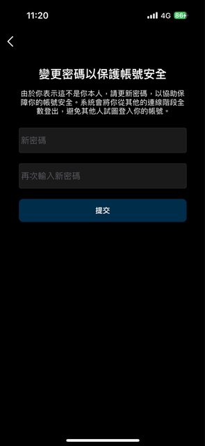 在我使用正確密碼後,ig要我再次變更密碼,但我嘗試過好幾次,按提交後都沒有任何的