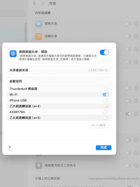 MAC接了一個Dock 再接了網路線 想分享網路給手機用Wifi