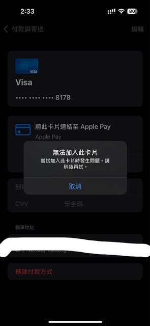 解除再綁定、錢包Apple pay 透過網銀加入卡片、重綁Apple pay卡片全試過沒有一個行