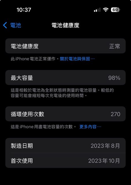 推 limulus: 我去年9月第一批15Pro,循環300剩91%,常在太陽下拍照拍 10/11 05:33