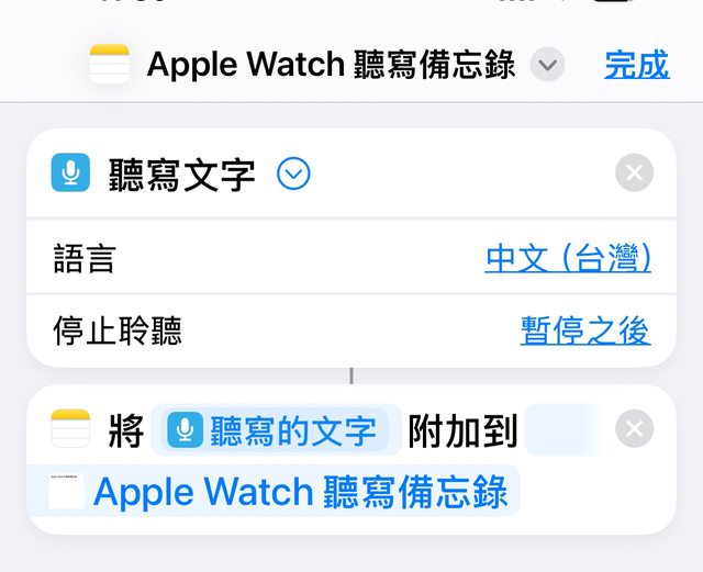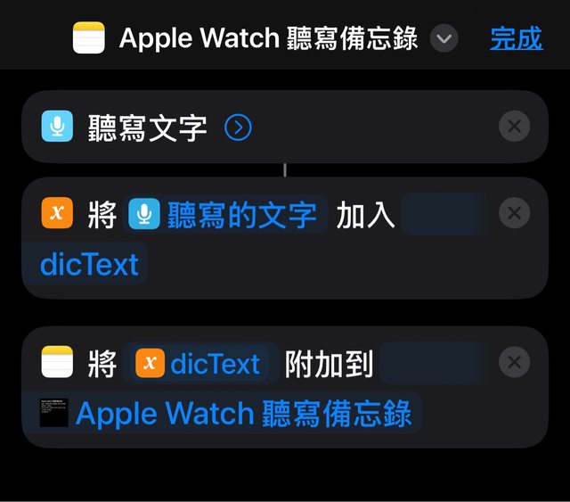 我想用一個捷徑在手錶上可以用語音輸入文字到備忘錄裡面,記錄一些想法或是心得