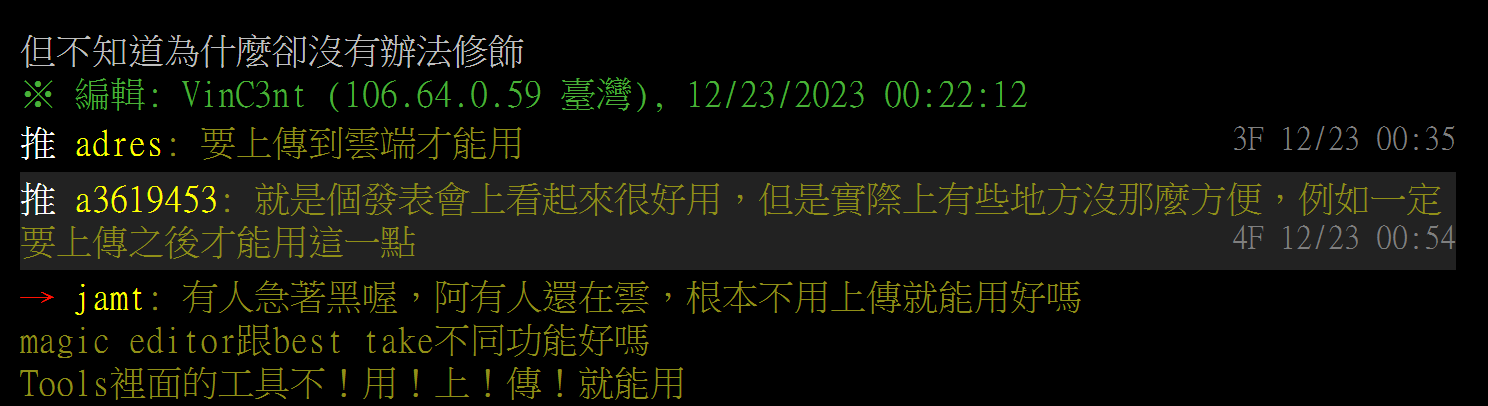 → Crios: 橡皮擦又不是雲端算 是生成圖像才是雲端算 4樓不懂還想誤 10/18 15:09