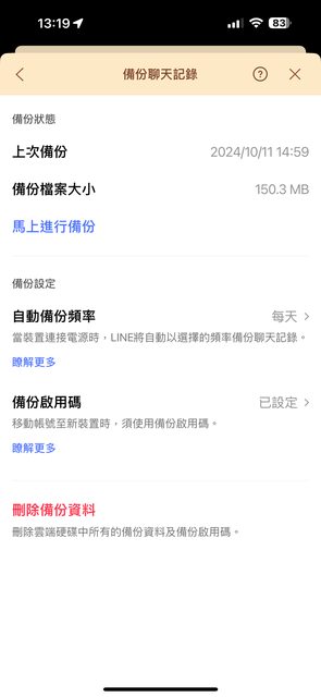 為了保險期見連Line裡面的備份聊天記錄都有按