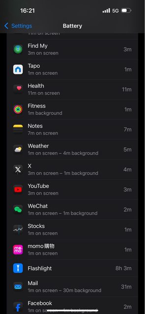 推 Wolff: 上禮拜遇過一次,使用手電筒功能後隔天看耗電紀錄發現使用 10/21 12:02
