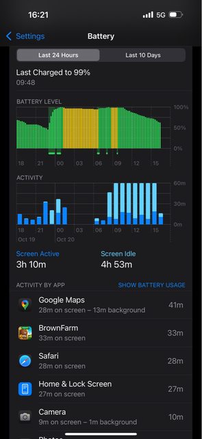→ Wolff: 後幾小時都還有顯示手電筒耗電。不過想說第二天就正常了, 10/21 12:02