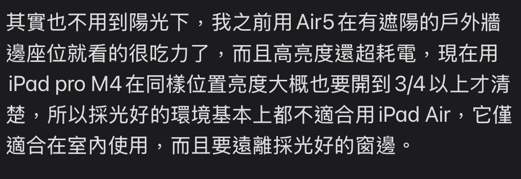 → kalmia: iPad Air最大亮度比iPhone SE還要低 本來就不是設計戶外10/21 11:07