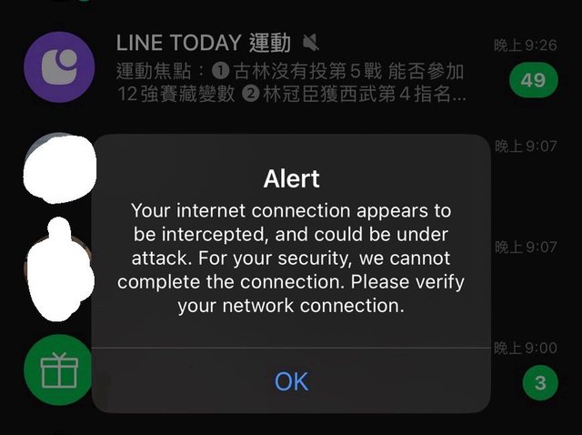 → riyan: 您的網路連線似乎被攔截,並且可能受到攻擊。為了您的安全 10/25 09:06