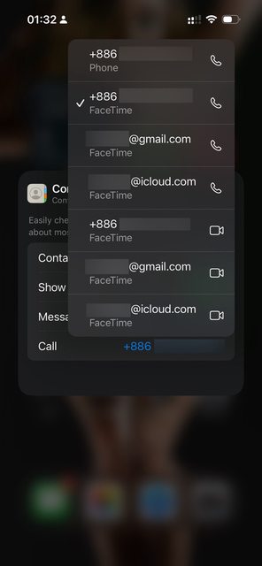 : 平時都用FaceTime跟家人通話,但是電話的桌面小工具點進去還要選擇
