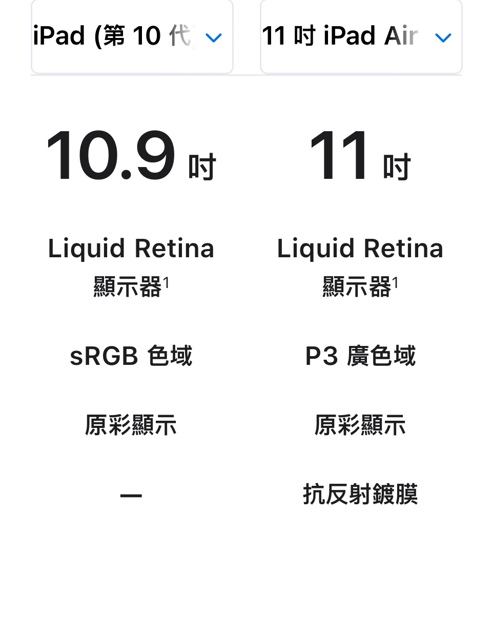 推 gary8442: iPad10跟 Air6 11吋一樣都是10.86吋螢幕 邊框一樣粗 10/28 22:40