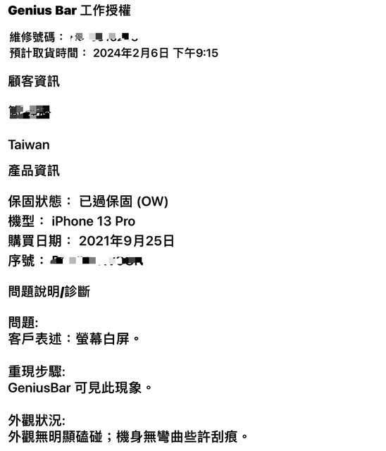 標題Re: [心得] iPhone13Pro白螢幕觸控有反應