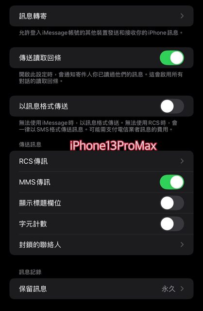 其中iPhone13ProMax 支援RCS傳訊,