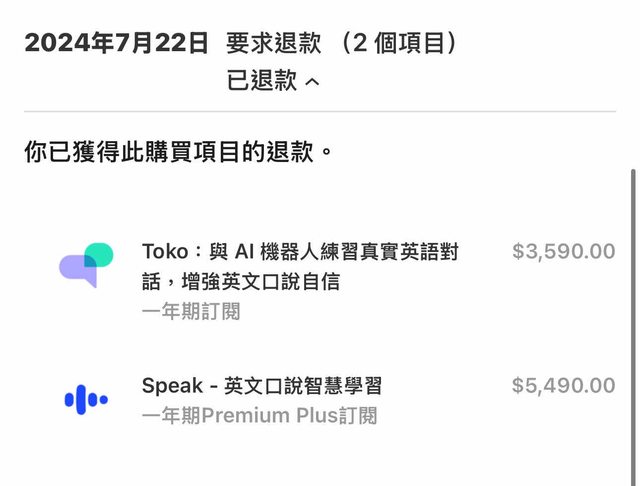 → r43546: 兩個app扣了8000多;我也知道退款無望了,但還是想11/04 07:57
